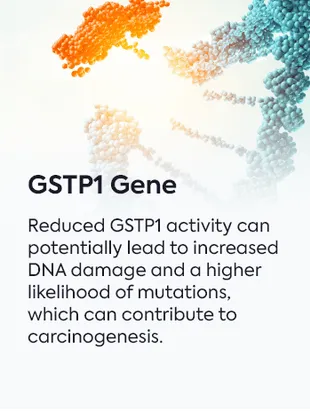 Understand how reduced GSTP1 activity can lead to increased DNA damage. Receive personalized insights to support your detoxification pathways through lifestyle adjustments.